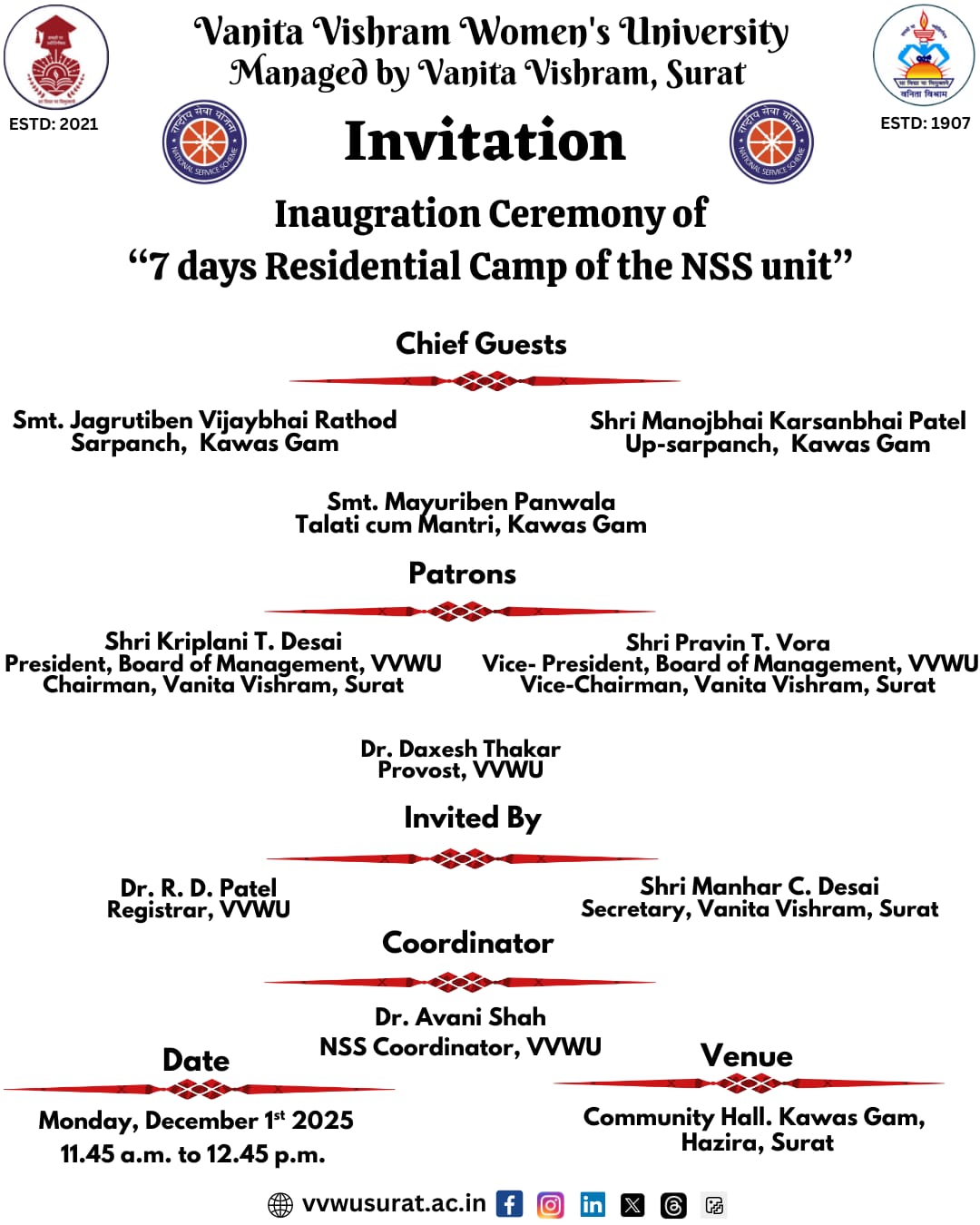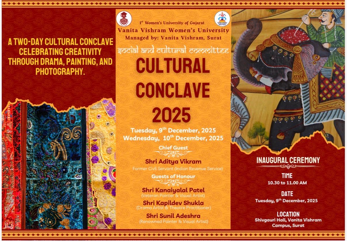 Day 2 -Cultural Conclave 2025 Social and Cultural Committee, VVWU has organized the two day Cultural Conclave–2025 on 9th and 10th December 2025 at Vanita Vishram Women’s University. The objective of this two-day conclave is to connect students with experienced …