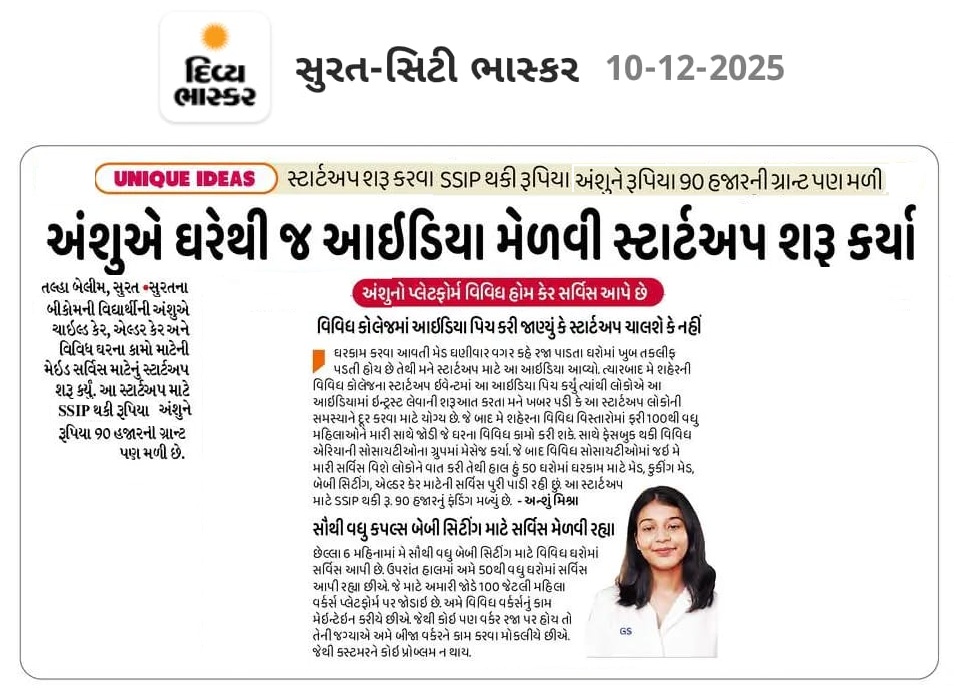We are extremely proud to share that our student of T.Y. B. Com., Anshu Mishra has been featured in a news article in Divya Bhaskar (Surat edition) for her inspiring entrepreneurial journey. What began as a simple need to manage …