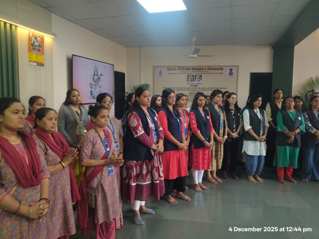 માતા સરસ્વતીનાં આ પવિત્ર સ્તોત્રોચ્ચાર સાથે વનિતા વિશ્રામ મહિલા વિશ્વવિધાલય VVWU , સુરતના મુખ્ય કાર્યાલય ખાતે માતા સરસ્વતી મૂર્તિ સ્થાપન આજના દત્ત જયંતી ના પાવન દિવસે દત્ત બાવની થી શરૂઆત કરી વિધિ અને ભક્તિના ભાવથી પૂર્ણ કરાઈ હતી. જ્ઞાન, વિવેક અને કળાનાં અધિષ્ઠાત્રી દેવી તરીકે પૂજનીય માતા સરસ્વતીનાં ચરણોમાં વિશ્વવિદ્યાલય પરિવાર દ્વારા ભાવપૂર્વક નમન અર્પણ કરવામાં આવ્યું.
