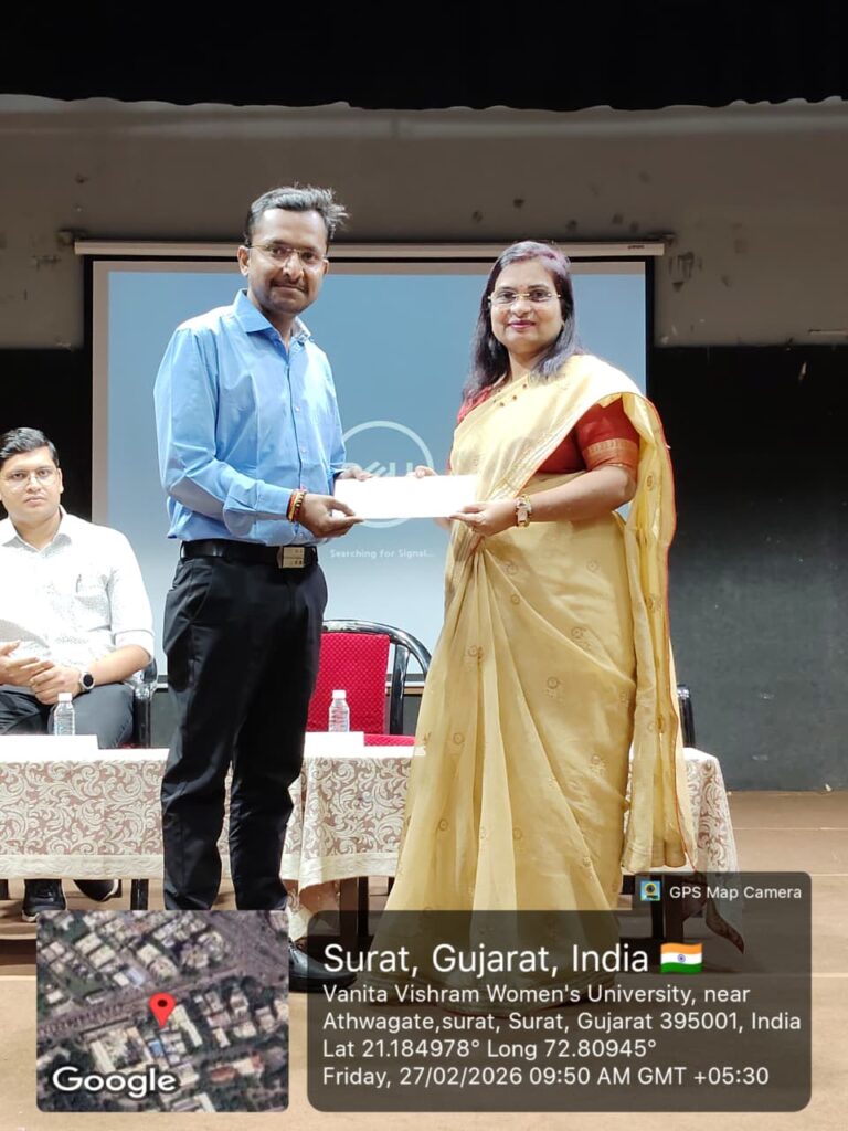 The Department of Commerce, Jyoti Dalal School of Commerce and Management, Vanita Vishram Women’s University (VVWU), Surat, in collaboration with Net-X IT & Multimedia Academy, successfully organized an Academic Guest Lecture on “Cyber Security and Artificial Intelligence” on Friday, 27th February 2026, from 9:30 a.m. to 11:30 a.m. at Shivgauri Hall, Vanita Vishram, Surat.