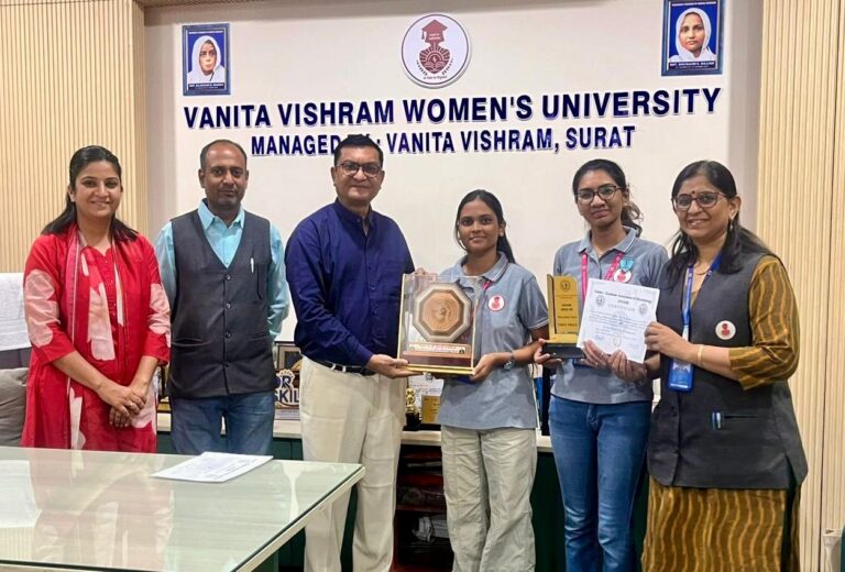 We are happy to share that Archie Shah and Aishwarya Bhavsar students of TY B.Sc Microbiology, Faculty of Science, Vanita Vishram Women’s University have secured 1st position in Quiz competition organised by UGAM (Undergraduate Association of Microbiology) among 56 teams across the Seventeen Microbiology Colleges of South Gujarat.
