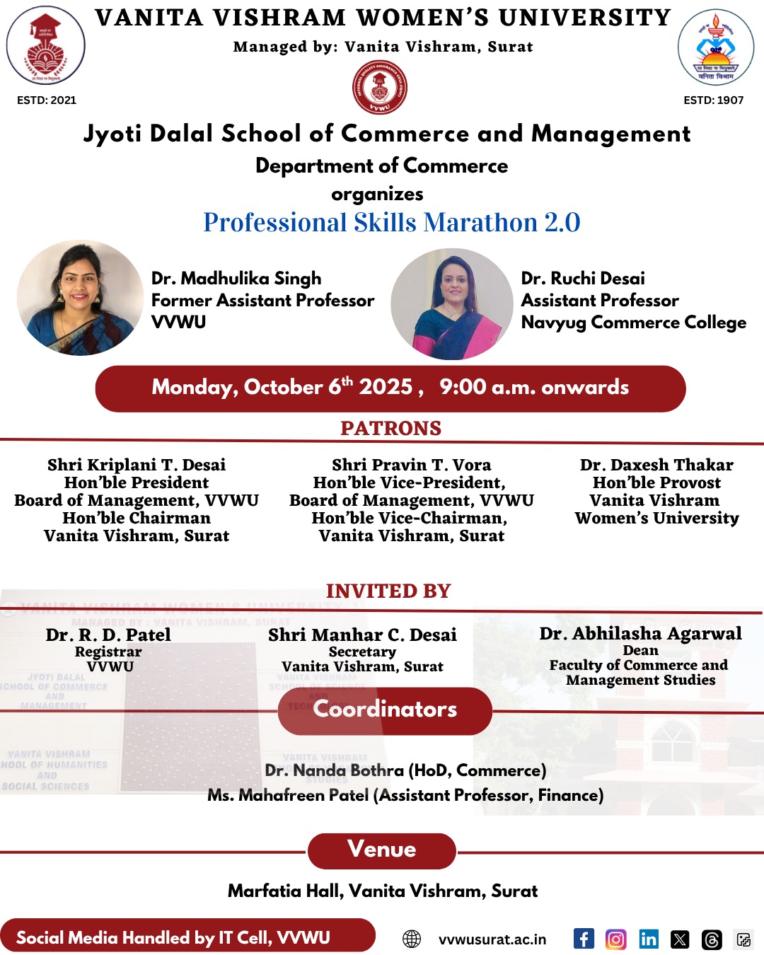 The Department of Commerce, Jyoti Dalal School Of Commerce And Management organized ‘Professional Skills Marathon 2.0’ on 6th October, 2025. The event was organised for S.Y. B.Com students with the objective of practically applying the skills learnt by them in …