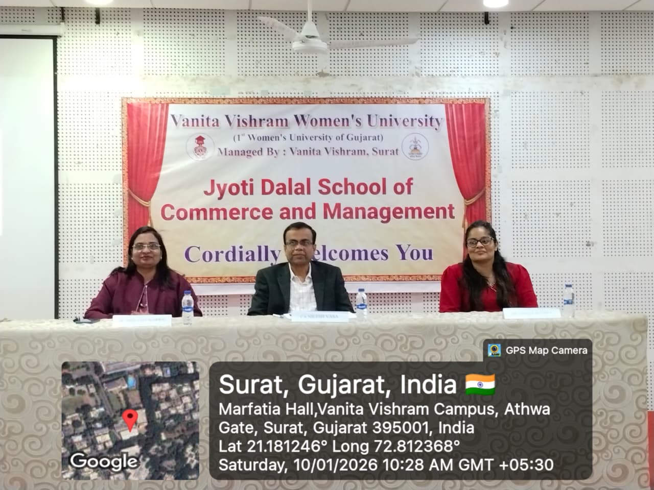 The Department of Commerce & Accountancy of JDSCM, Vanita Vishram Women’s University successfully organized an expert session on the topic “Understanding E-Commerce” on Saturday, January 10, 2026. The session featured CA Nilesh Vasa, Senior Advisor at E&Y LLP and Professor …