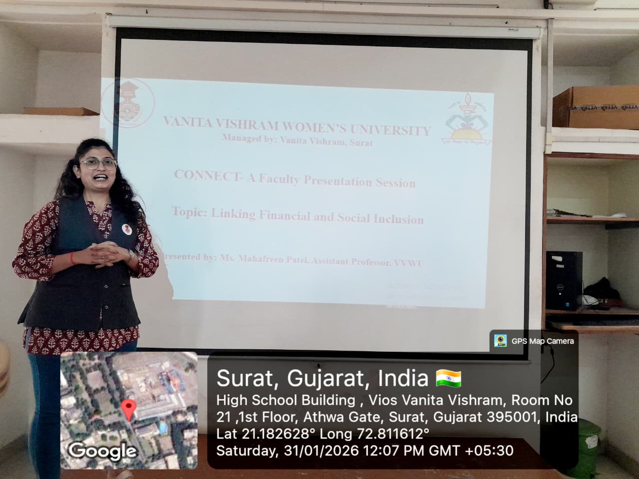 The R & D Cell of Vanita Vishram Women’s University (VVWU) successfully organized CONNECT – A Faculty Presentation Session on the theme “Linking Financial & Social Inclusion through Cyber Intellect” on Saturday, January 13, 2026. Ms. Mahafreen Patel conducted a …
