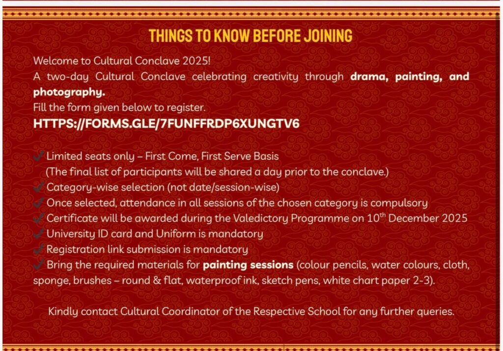 We are pleased to announce the Cultural Conclave 2025, an exclusive creative engagement designed for students.