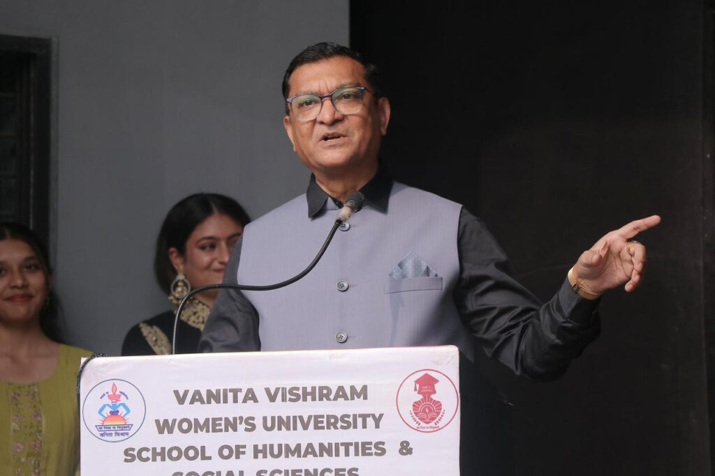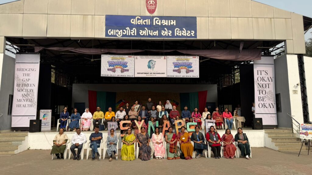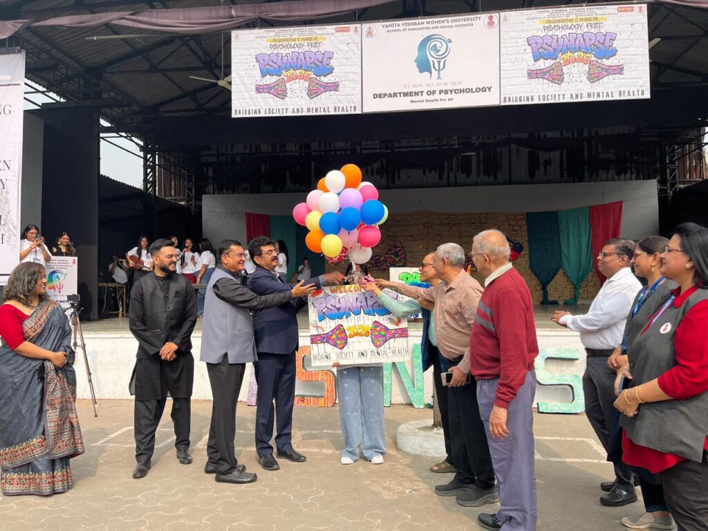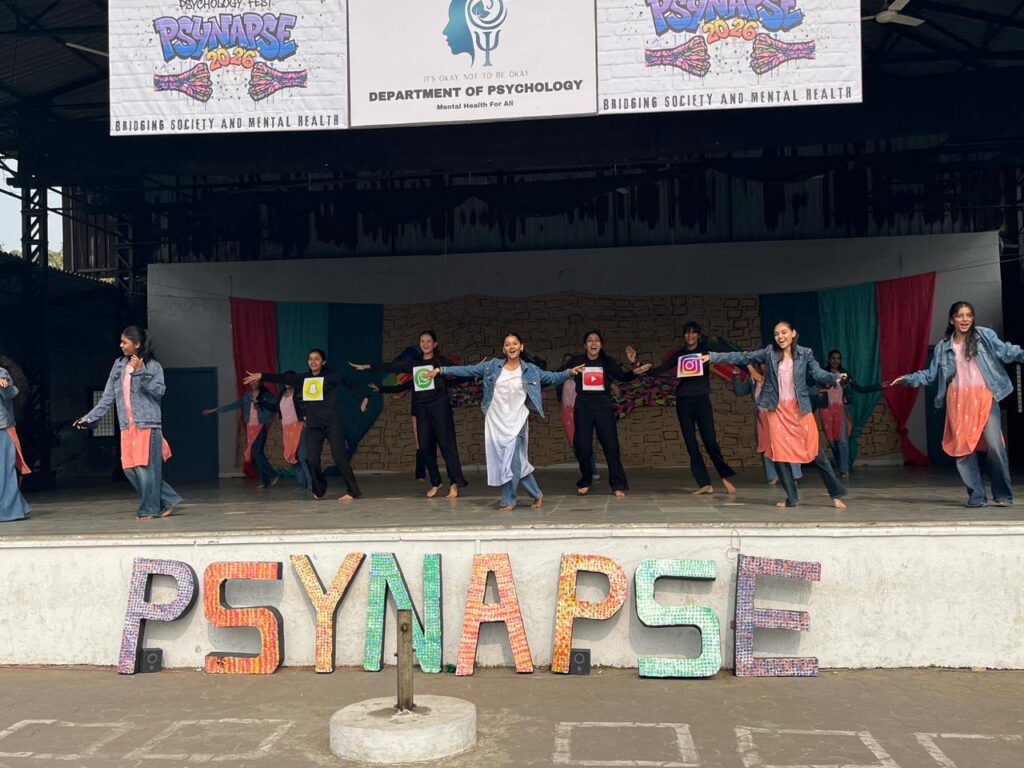 The Department of Psychology and मन – Psychological Counselling Cell of Vanita Vishram Women’s University, Surat, successfully organized the Annual Psychology Fest, Psynapse 2026, on January 30, 2026. Held at the Bajigauri Open Air Theatre from 10:00 AM onwards, the fest was designed with the primary aim to bridge the gap between society and mental health. The event was graced by the esteemed presence of Dr. Prashant Bhimani, a renowned psychologist from Healthy Minds Clinic (Ahmedabad), who served as the Chief Guest and delivered an insightful speech on મનદુરસ્તી.