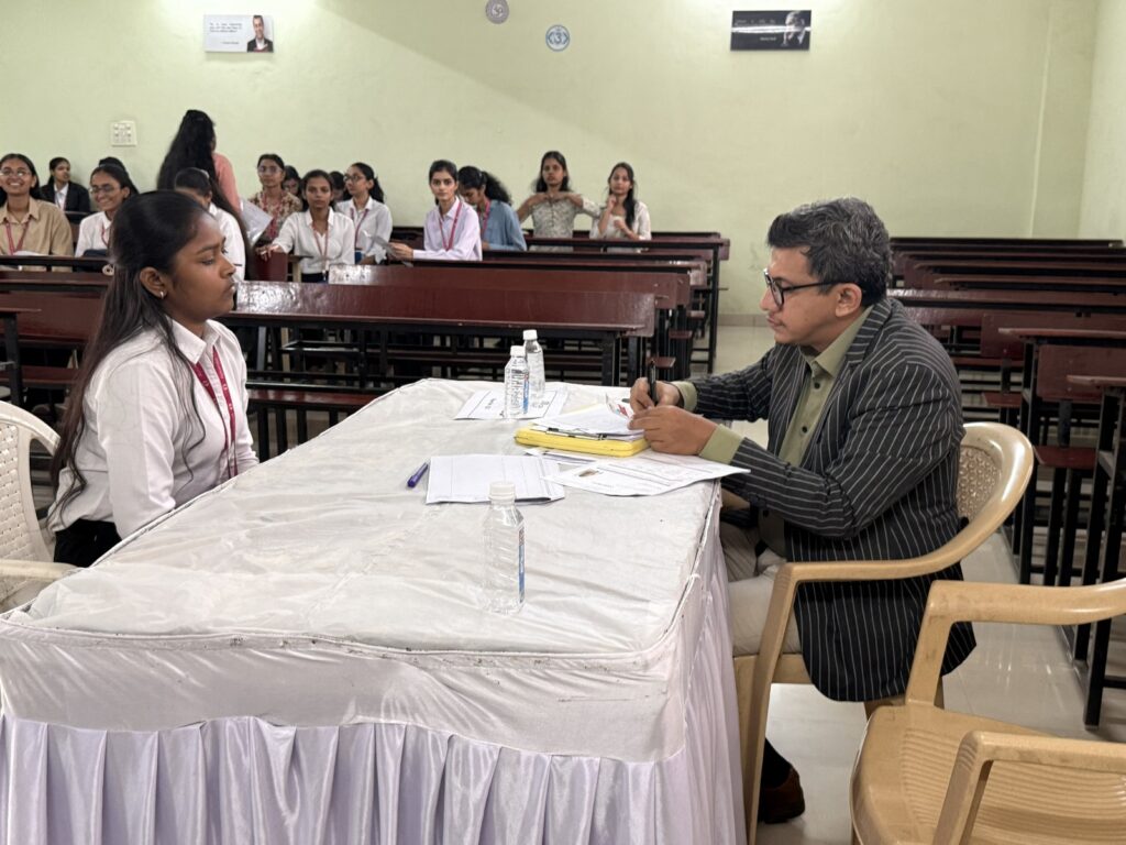 Various recruiters namely: Palm infotech, Shrinath group, Bank of Baroda, Rise up, Amazon, Axis Bank, VSquare System, Divya Bhaskar, Think Resource, Teleperformance, Delivery Limited, JBGO, Persol, Talent Corp Solutions Private Limited, PP Savani Vidhya Sankul, Quess including Tata motors, Tata autocorp, Renew Power, MRF, Britannia, Schaffler, Sterlite and Nestle came for taking the interview of the students.