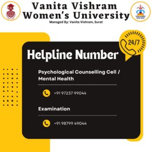 We are pleased to announce that the university has started two 24×7 helpline services exclusively for all the students of VVWU namely, 1. Psychological Counselling Cell/ Mental Health helpline The mobile no is +91 97237 99044 Students of VVWU can