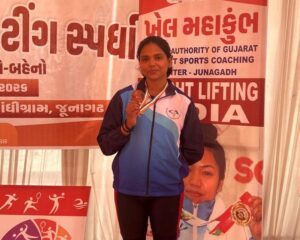 Heartiest congratulations to Ms. Pandey Jaya (FYBA English) from SOHASS for winning the Bronze Medal in the 63 kg category at the Khel Mahakumbh Weightlifting State Tournament 2025–26, held on 19th February 2026 at Junagadh